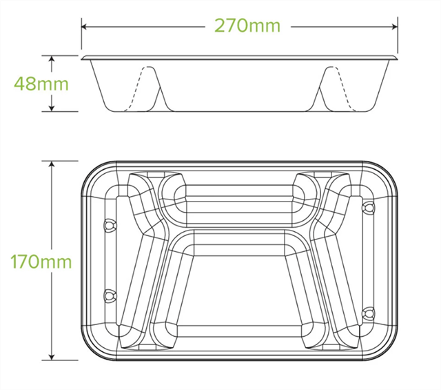 BioPak 4-Compartment Takeaway Lid - 270X170Mm 150 Pack Natural