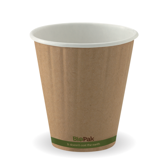Go Bio Double Wall Coffee Cups Biodegradable Compostable PLA 8oz Kraft Carton 500