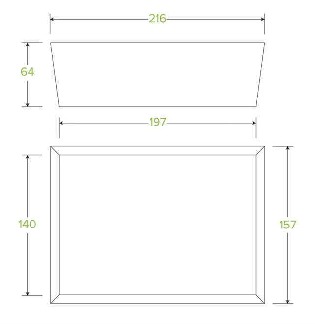 64mm H x 140mm W x 197mm L