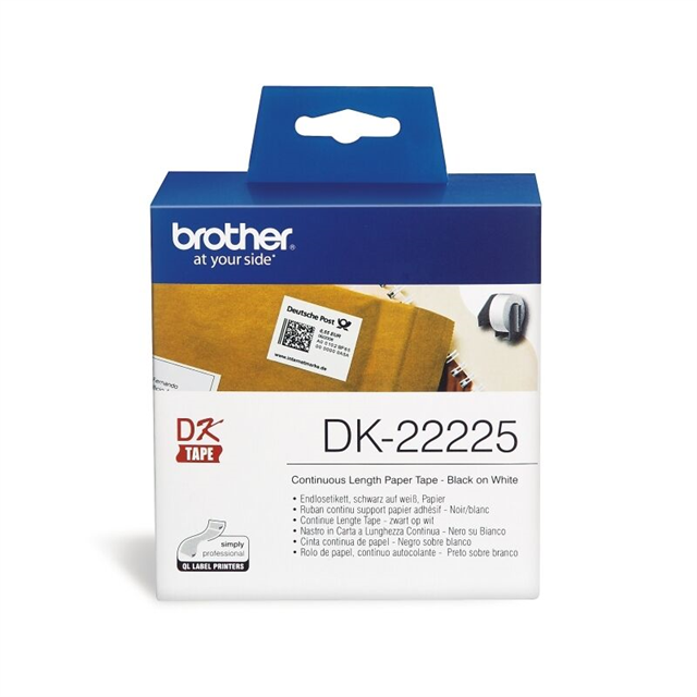 Brother DK-22225 Genuine Black Text on White Continuous Paper Label Roll 38mm x 30,48m