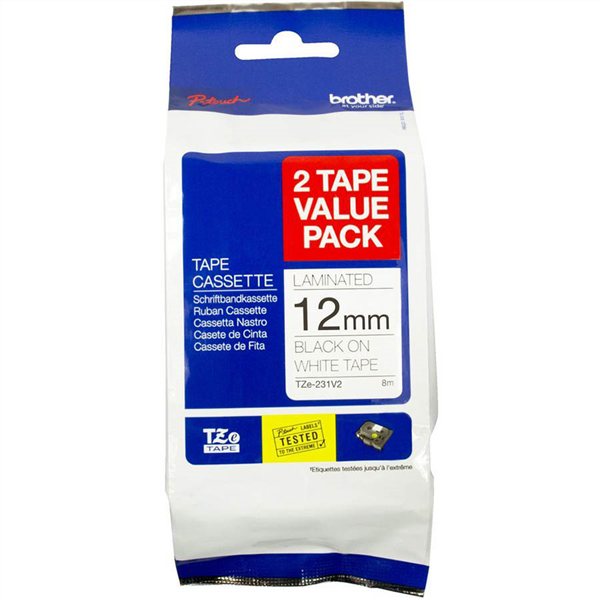 This genuine laminated TZe-231 labelling tape cassette is especially versatile thanks to its easy-to-read black and white colour – so it comes in useful around the home, office and in other workplaces.