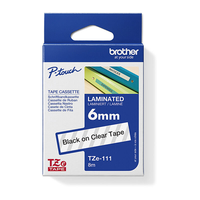 Brother TZe111 Labelling Tape 6mmx8m Black on Clear