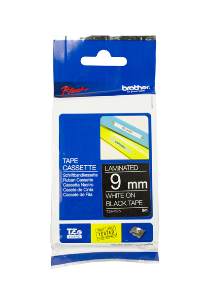 Brother TZe325 Labelling Tape 9mm White on Black Adelaide Direct Stationers