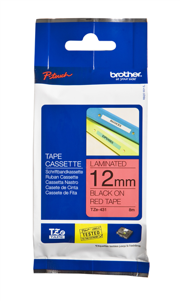 Brother TZe431 Labelling Tape 12mm Black on Red