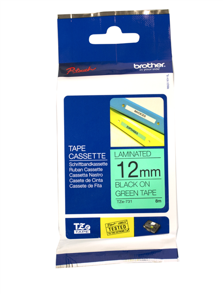 Compatible with a wide range of Brother’s P-touch printers, this genuine laminated TZe-731 labelling tape cassette is especially versatile thanks to its easy-to-read black and Green colour – so it comes in useful around the home, office and in other workplaces.
