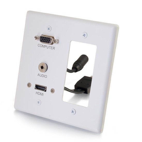 The HDMI, VGA and 3.5mm Audio Pass Through Double Gang Wall Plate is perfect for the transition to in-wall cabling