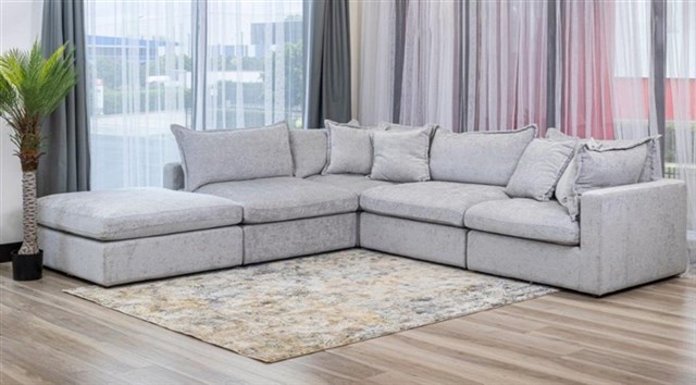 Introducing the Carolina Corner Lounge Suite with Ottoman in Stunning Pewter – a symphony of style, comfort, and adaptability designed to elevate your living space to the pinnacle of modern elegance.