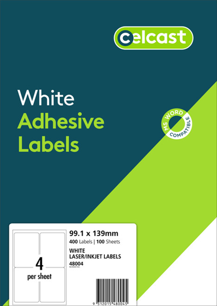 Celcast Labels 4UP 99.1x139mm White 100 Box Adelaide Direct Stationers