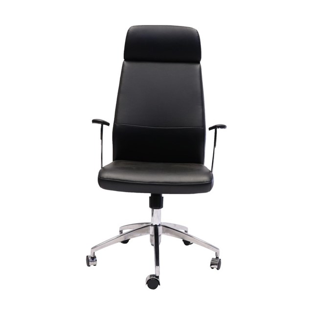 Rapidline High Back Slimline Executive Chair East To Adjust Seat & Back Tilt With 3-Position-Lock Mechanism With Anti-Shock Upholstered In Soft Commercial Grade Black PU Leather Soft PU Armrest Pads With Stylish Radial Polished Aluminium Supports Polished Aluminium 5 Star Base 120 kg Weight Rating 10 Year Warranty