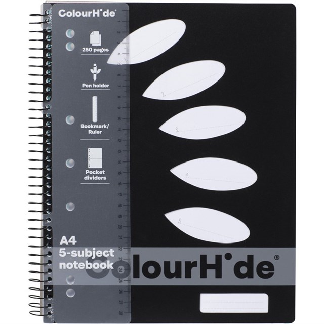 ColourHide Notebook A4 5 Subject 250 page Black (Sold as Each, 5 in a Pack)
