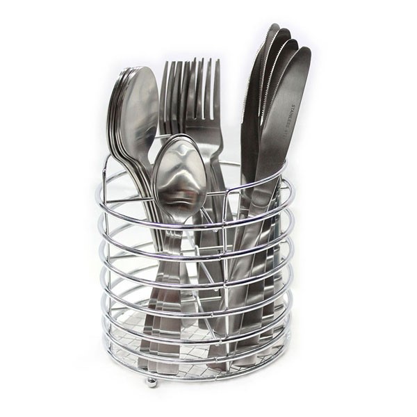 If you are seeking modern, stylish and elegant cutlery to add to your kitchen, look no further than the Connoisseur satin stainless steel cutlery set that comes with a chrome wire caddy