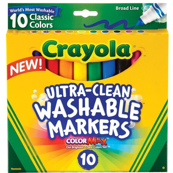 Teachers will love these Crayola Ultra-clean Fine Line Markers as they can easily be removed from skin, uniforms and painted walls
