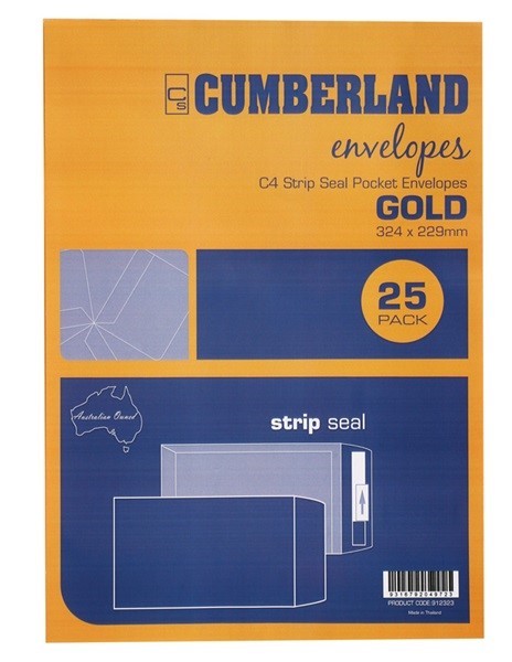 Cumberland Strip Seal Envelope C4 85gsm Gold 25 Pack Adelaide Direct Stationers
