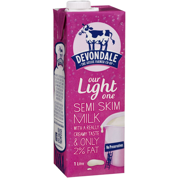 Devondale Milk Semi Skim UHT Long Life 1L (Sold as Each, 10 in a Box) Adelaide Direct Stationers