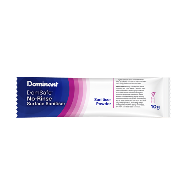 DomSafe™ No-Rinse Sanitiser 10g Sachet Carton (50x10g sachets)