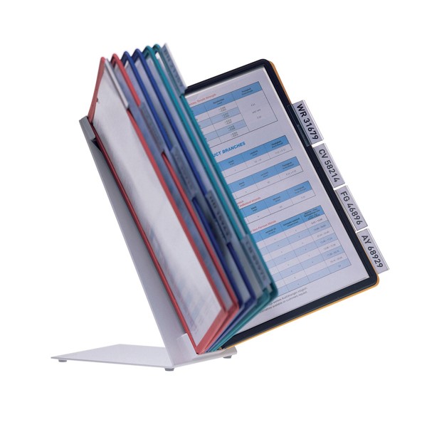 The Durable Vario Table Display System comes with a set of 10 SHERPA display panels so you can create a booklet of information and display it to customers and clients