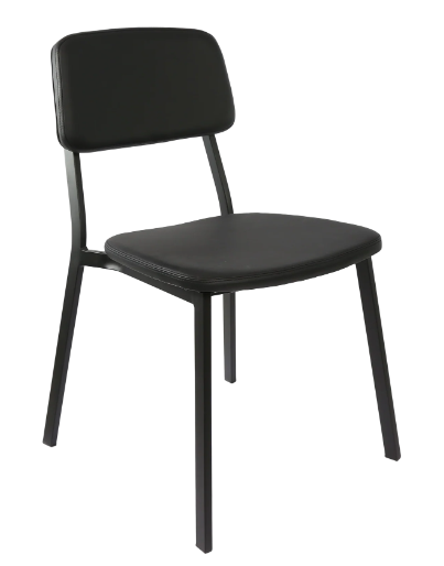 What sets the Denver Chair apart is its customizable features: a sleek black vinyl seat pad and the option of either vinyl or veneered plywood for the backrest, allowing for tailored configurations to suit individual preferences and interior themes