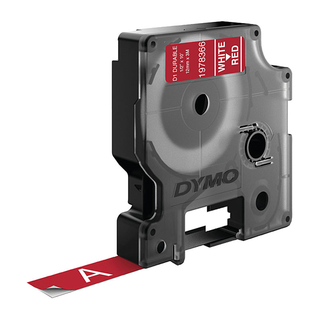 Dymo D1 Cassette Tape Durable Label White on Red 12mm x 3m Each
