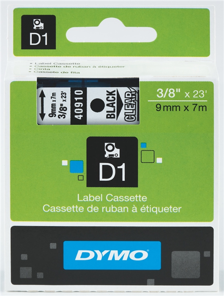 Dymo D1 Label Tape Black on Clear 9mm x 7m Each