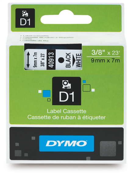 Dymo D1 Label Tape Black on White 9mm x 7m Each