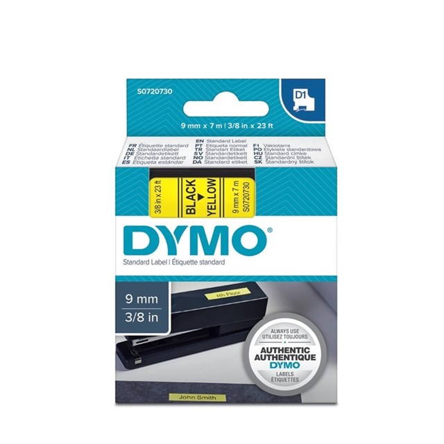 Dymo D1 Label Tape Black on Yellow 9mm x 7m Each