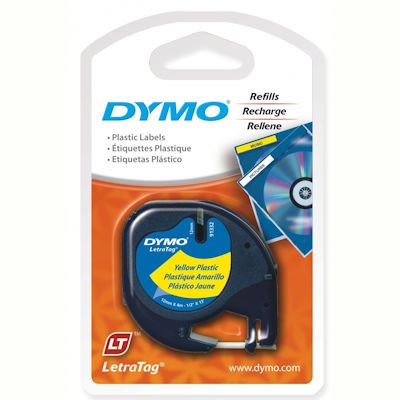 Dymo LetraTag Labeller Tape Plastic Yellow 12 x 4m Each Adelaide Direct Stationers