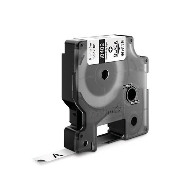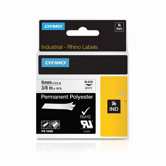 Dymo Rhino Label Perm Polyester 9mm Blk on Whtare Permanent Polyester labels to fit most patch panels, blocks and other distribution panels