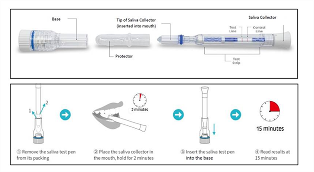 The assay is for the direct and qualitive detection of SARS-CoV-2 viral nucleoprotein antigens from saliva samples