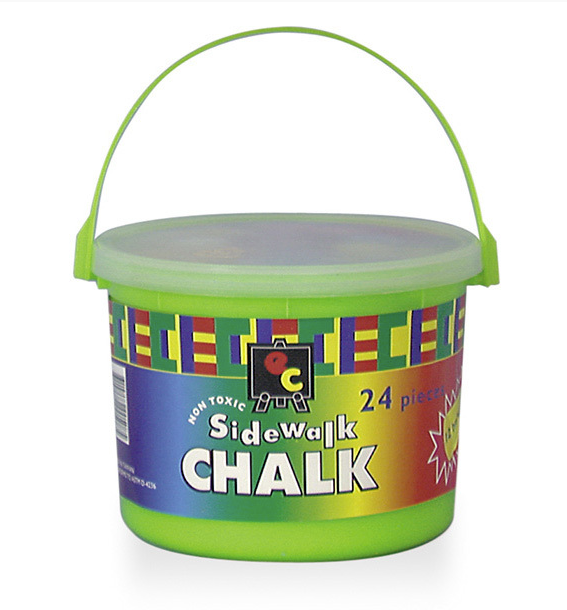 This chalk bucket contains 24 jumbo chalks that are non-toxic, biodegradable, and easy to grasp