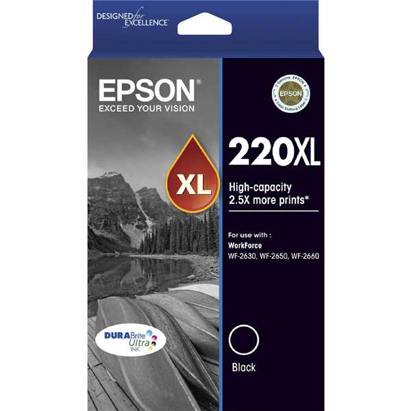 This is a genuine Epson #220 HY Black Ink Cartridge – it has been designed to work with a range of Epson printers, details of which are provided below