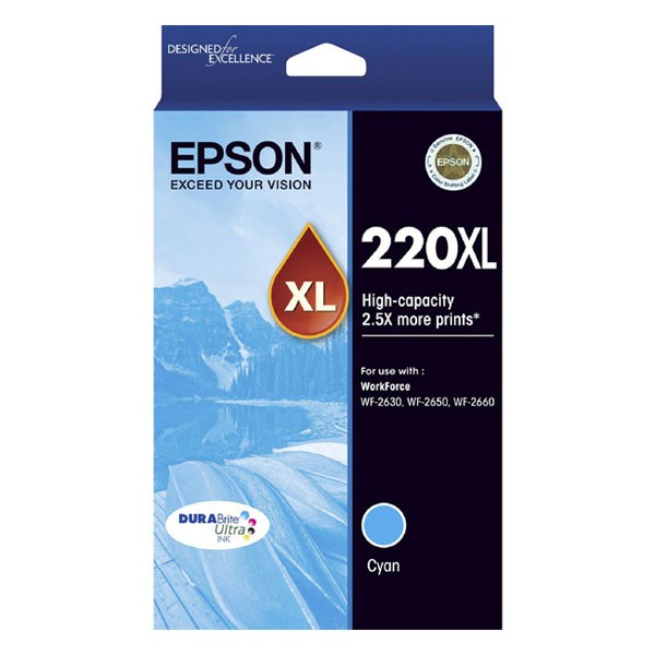 This is a genuine Epson #220 HY Cyan Ink Cartridge – it has been designed to work with a range of Epson printers, details of which are provided below