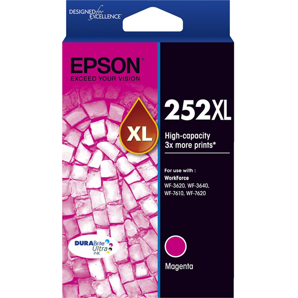 This is a genuine Epson #252 HY Magenta Ink Cartridge – it has been designed to work with a range of Epson printers, details of which are provided below