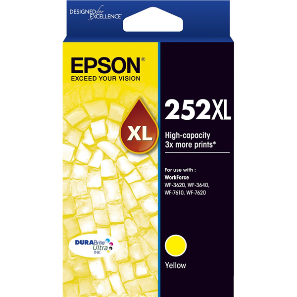 This is a genuine Epson #252 HY Yellow Ink Cartridge – it has been designed to work with a range of Epson printers, details of which are provided below