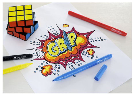 Grip colour markers have an ergonomic shape while the raised dot surface ensures a secure grip
