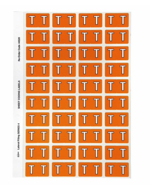 There are 240 orange Alphabetical âTâ Side Tab Colour Coding Labels in a pack, size of 25 x 42mm ready to stick straight onto the side of your file