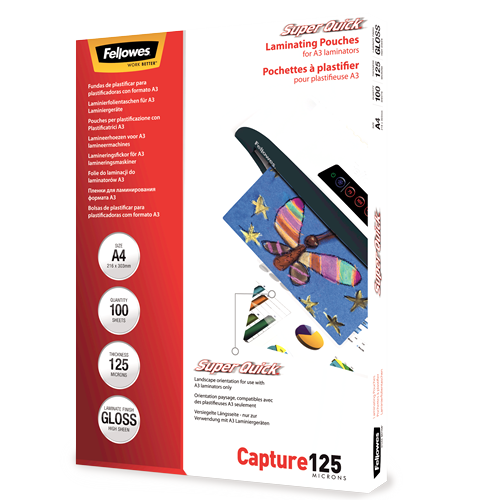 Fellowes Laminating Pouch A4 125 Micron Superquick 100 Pack