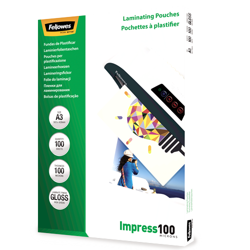 Fellowes Laminating Pouch Gloss 100micron A3 Clear 100 Pack