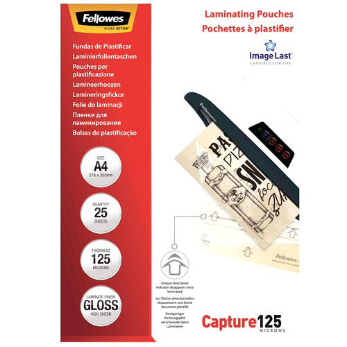 Fellowes Laminating Pouches A4 125 Micron 25 Pack