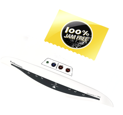 Clear low-friction path for documents ensures the laminator is 100% Jam Free when using Fellowes branded pouches