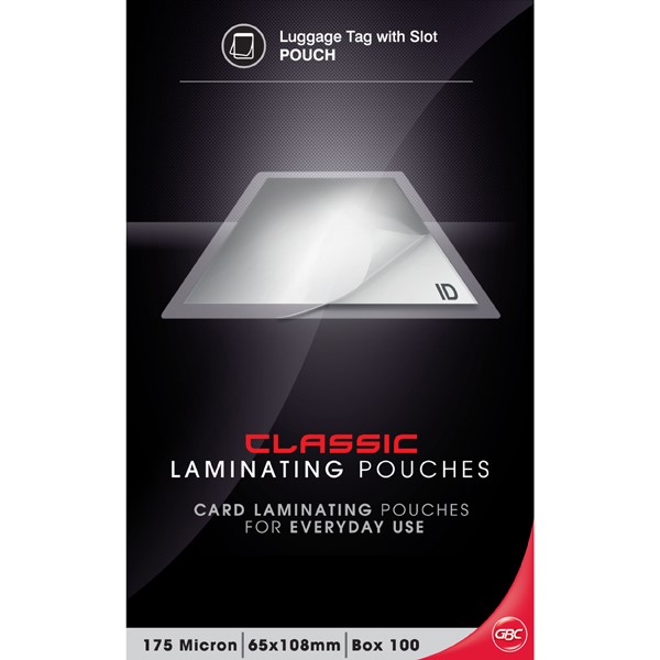GBC Laminating Pouch Luggage Tag 125micron Clear 100 Box Adelaide Direct Stationers
