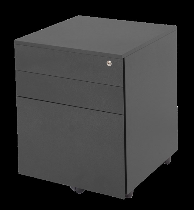 The Rapidline GO Mobile Pedestal - 3 Drawer is a steel office storage unit designed to hold foolscap folders in a traditional side-to-side configuration