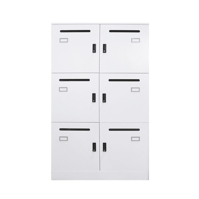 GO Office Locker Unit - White China ** ASSEMBLED ** 1375mm H x 800mm W x 486mm D 6 Lockable Individual Compartments with Mail / Document Slot and Adjustable Shelf Name Tag Holder Fitted To Each Door 4 Digit Combination Lock Fitted To Each Door With Both Private & Public Functions 1 x Master Key Provided With Each Unit Four Easy Adjust leveling Feet White China P/C 10 Year Warranty