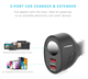 Gorilla Power Dual Port QC3.0 Car Charger and Cigarette Lighter Extender