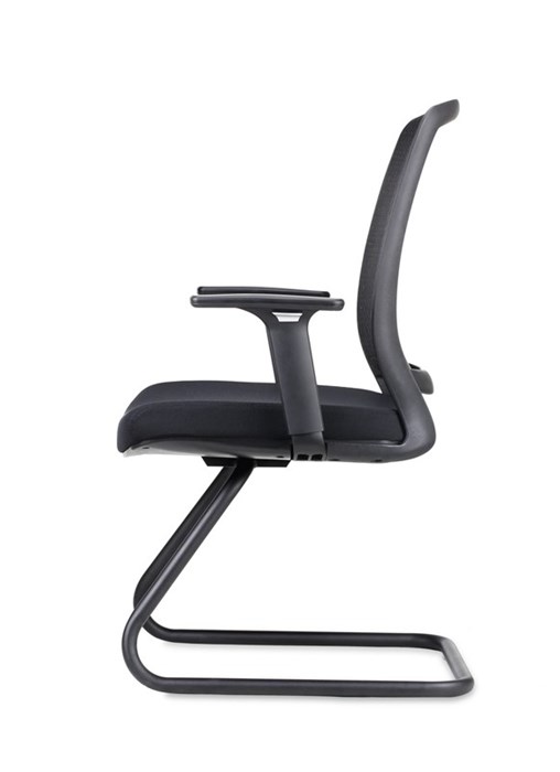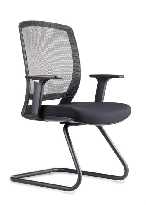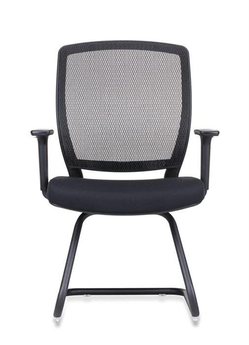 Promesh Visitor Chair - Black Fabric Black P/C Cantilever Frame with Sled Base Black Mesh Back Rest and Black Upholstered Seat Pan Includes Removable Adjustable Arms 135 Kg Weight Rating BIFMA Tested GreenGuard GOLD Approved 10 Year Warranty