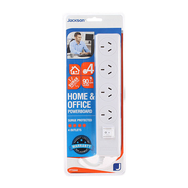 The Jackson 4 Way Powerboard 90cm (JPT5944) is a versatile and practical power solution designed for home and office use