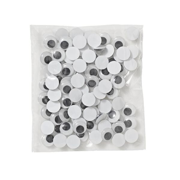 The pack contains 100 joggle eyes that are 12 mm in diameter