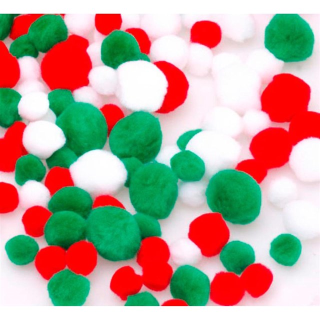 Jasart Pom Poms - Xmas Glitter Colours Assorted Sizes Adelaide Direct Stationers