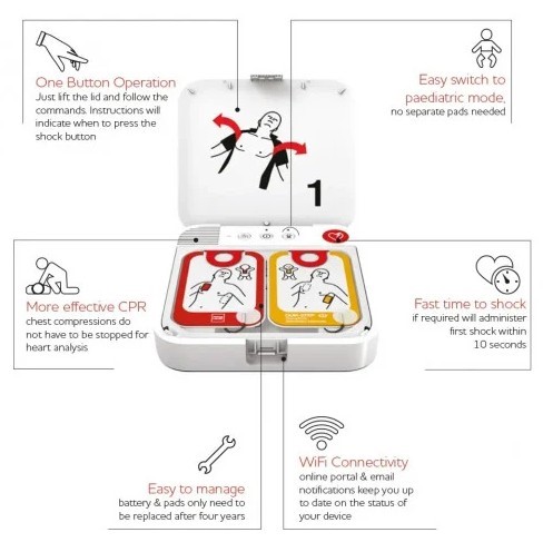 Featuring latest technology rescuers can quickly begin lifesaving care in just 2 steps making it fast to shock
