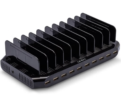 Simultaneous charging of up to 10 tablets, mobile phones and other USB devices
