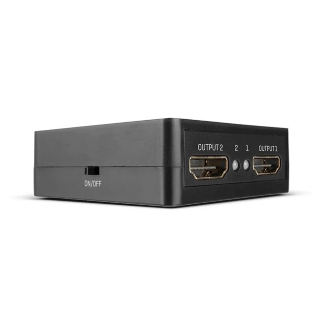 A compact, USB-powered HDMI 2.0 splitter that connects a single source to two 4K Ultra HD displays simultaneously, supporting 4K@60Hz, HDR, and HDCP 2.2.